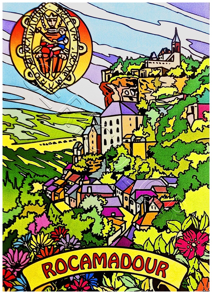 Dibuix de vellut per pintar amb un paisatge de Rocamadour. Ideal a partir de 7 anys